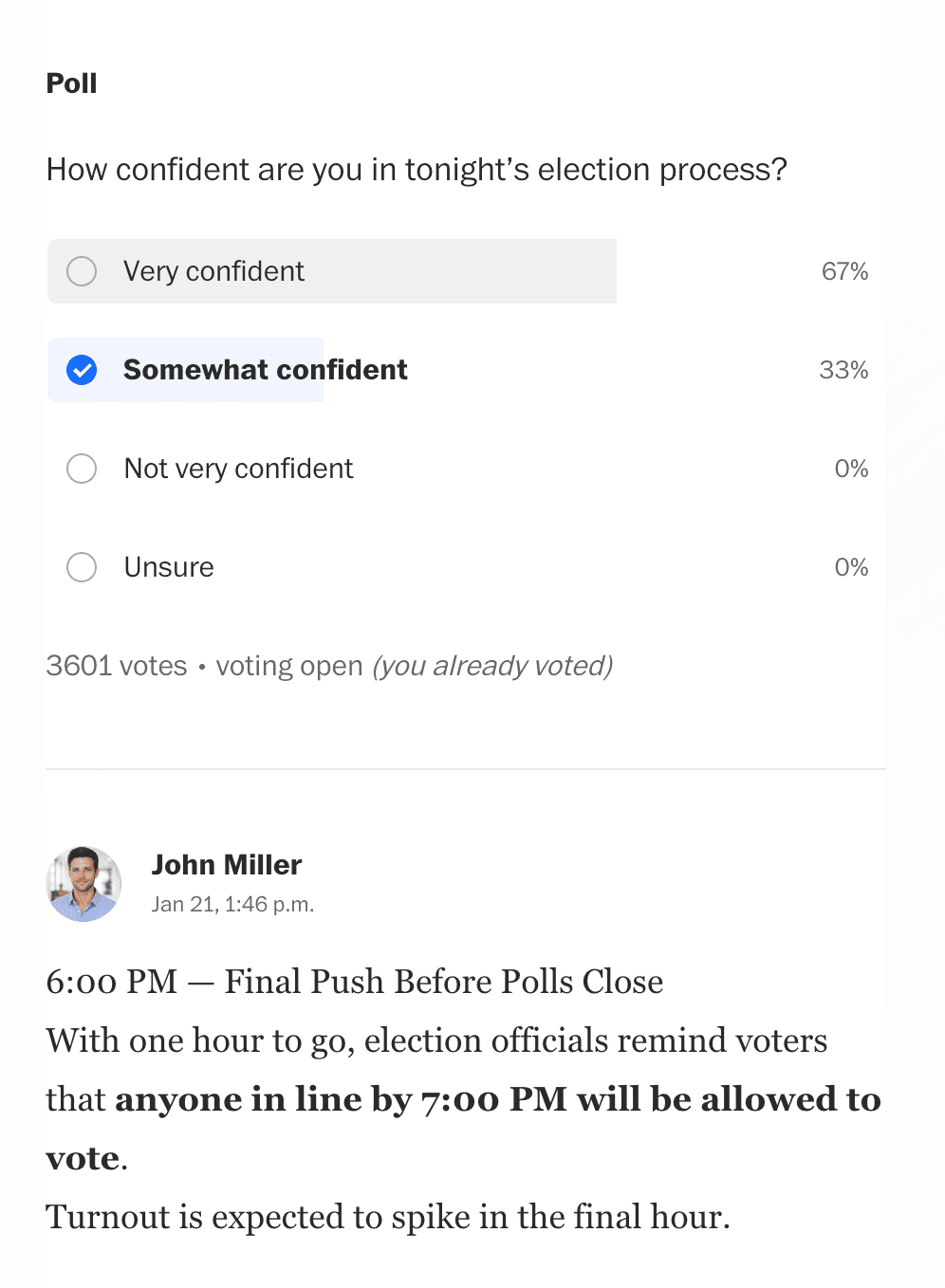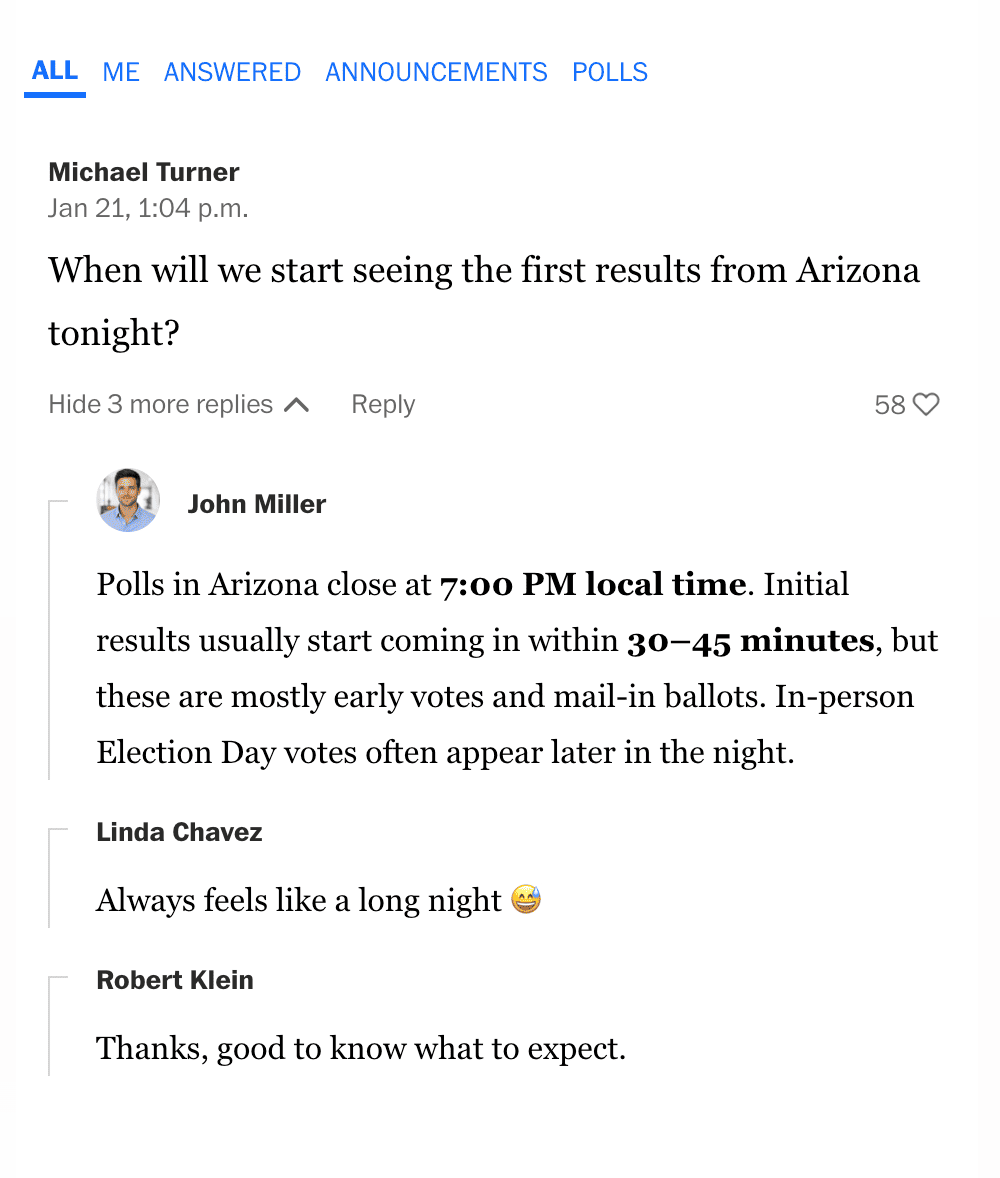 During major moments like election nights, The Washington Post runs live blogs powered by Pubble—bringing verified updates, expert context, and audience reactions into one continuously evolving stream.